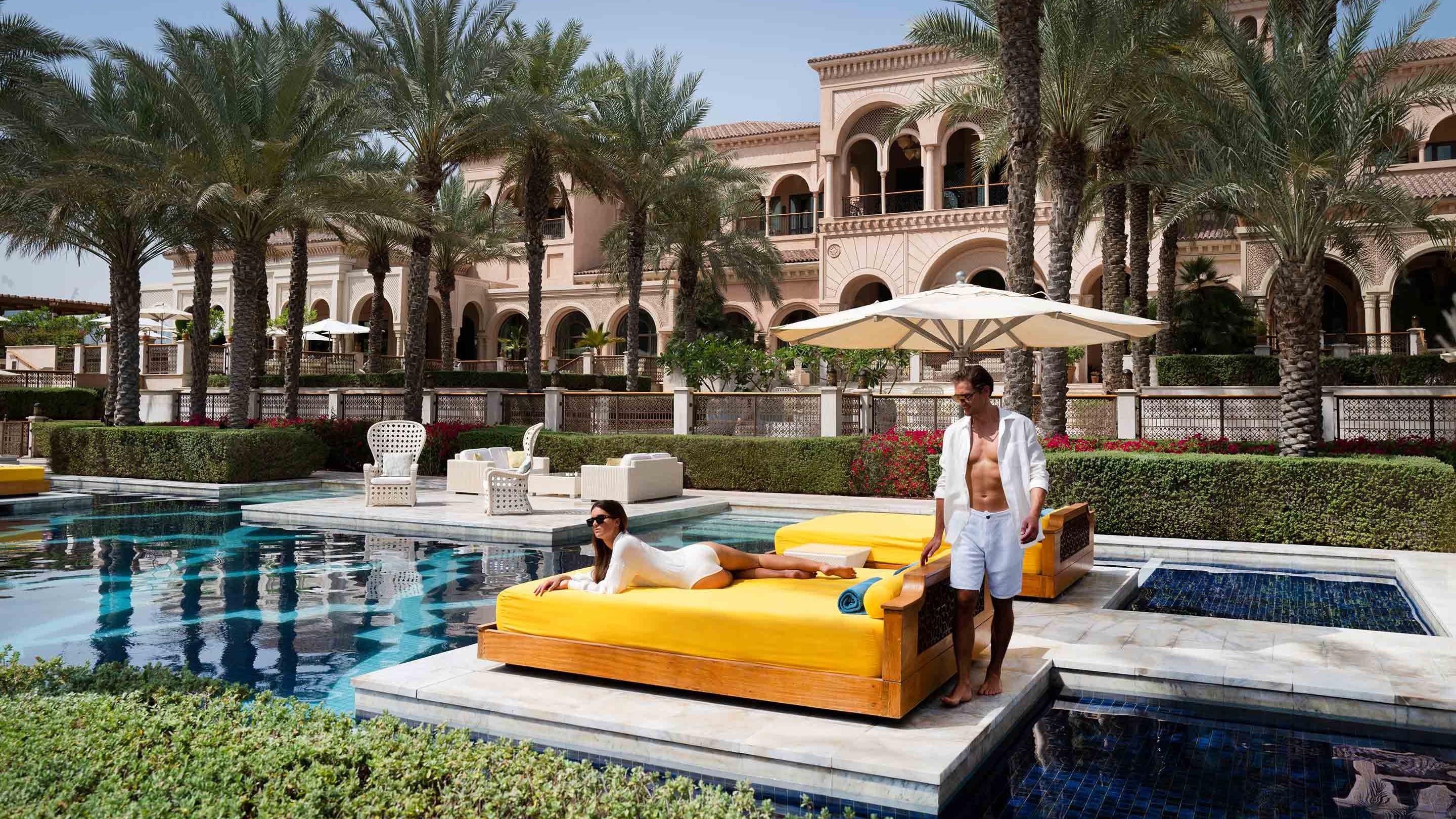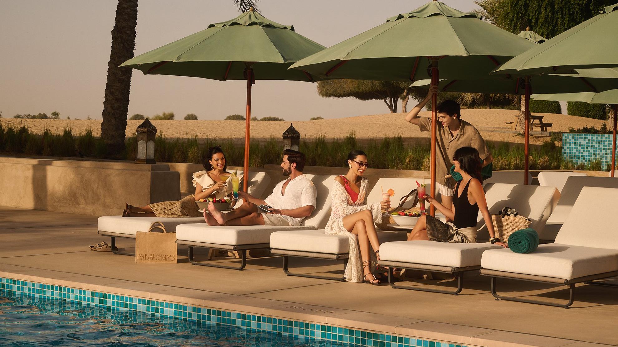 An adults-only sanctuary at One&Only The Palm, superyacht-inspired Safina epitomises elegant serenity. Plush loungers line a stretching pool that shimmers under the golden sun, where guests sip cocktails and graze on light bites.
