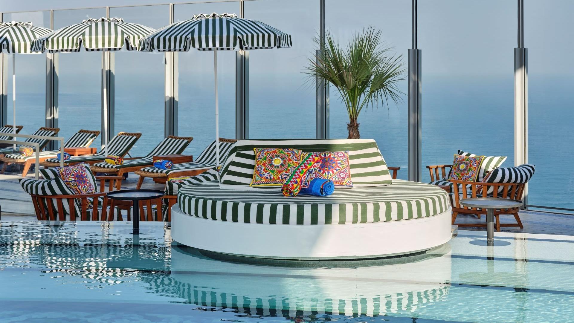 Opulent Italian style and quintessential Dubai luxury harmonise at Atlantis The Royal, where dazzling pool club Cloud 22 gets a high-fashion makeover from Dolce&Gabbana x Ounass. A stretching infinity pool is the perfect spot to soak up panoramic Palm views, while an array of loungers, floating day beds and cabanas set the tone for a show-stopping day of refined tan-topping.