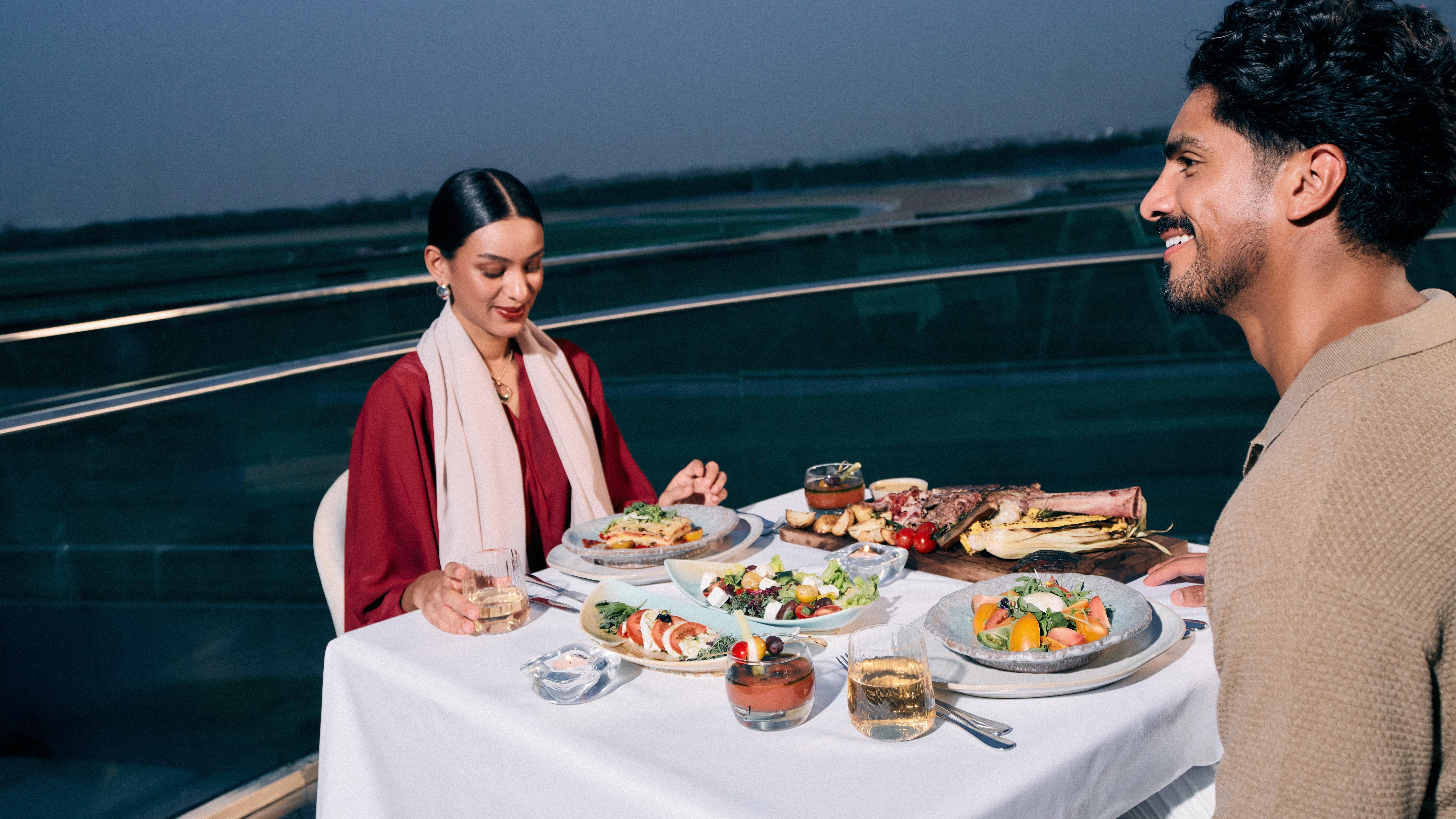 Under a canopy of twinkling lights, discover tradition, artistry and authentic culinary delights at Oumsiat. An open-air lounge backdropped by the iconic façade of The Meydan Hotel, delight in regional flavours served in a memorable and inviting setting. Iftar is priced at AED 299 per person and served from 6.30pm to 8.30pm.