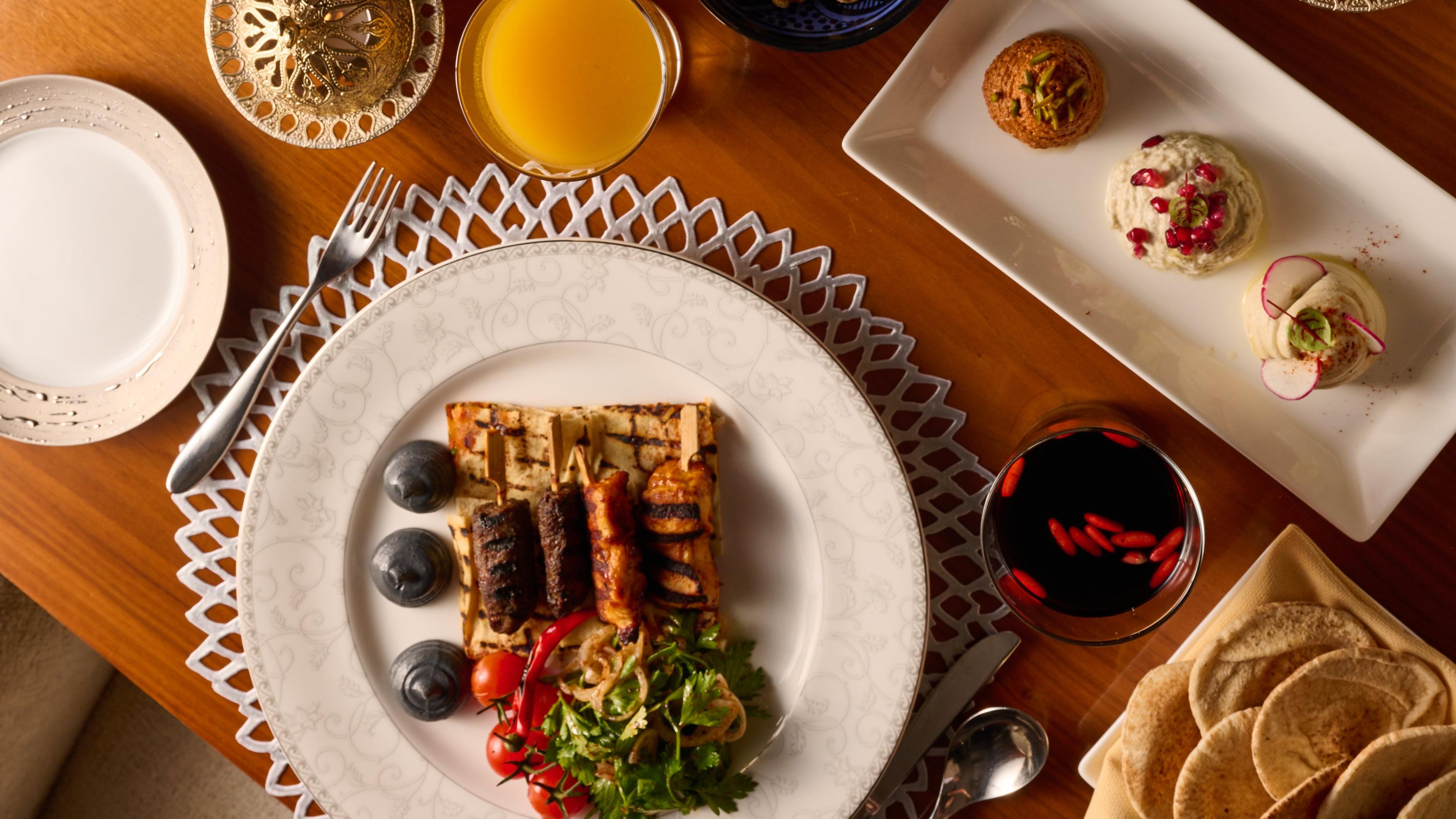 Transforming the ballroom at One&Only Royal Mirage into a refined Ramadan experience, enjoy a generous Levantine and Arabic buffet at Peregrine. Discover a lavish spread of lamb ouzi, shawarma, mezze favourites, and traditional sweets, served in a warm and atmospheric majlis setting.